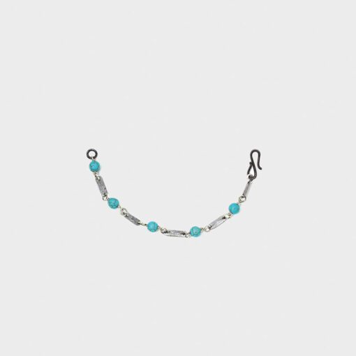 Our women’s turquoise loop wire bracelet embodies subtle beauty and sophistication. The hammered design offers a unique texture and craftsmanship. A handcrafted metal clasp ensures security and durability. The vibrant color of the turquoise links gives a refreshing aesthetic. With a length of 20cm, it offers a comfortable fit. Lightweight and comfortable to wear, it is an expression of your personality and taste.