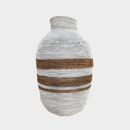 Bohero Korb Bemalt – Weiß & Naturfarben – (Simbabwe) – Medium