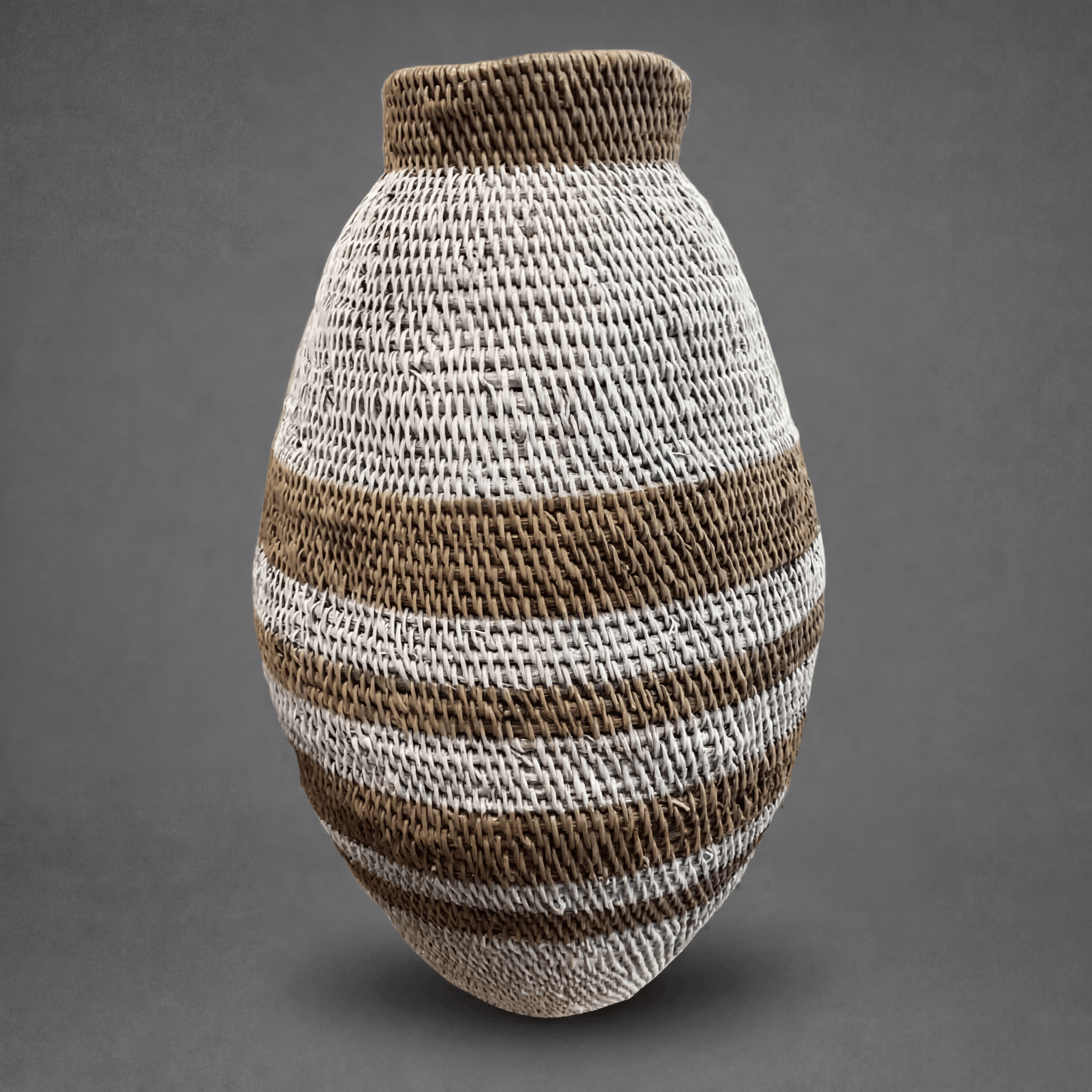 Bohero Korb Bemalt – Weiß & Naturfarben – (Simbabwe) – Small