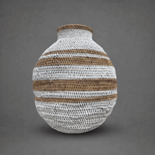 Bohero Korb Bemalt – Weiß & Naturfarben – (Simbabwe) – M