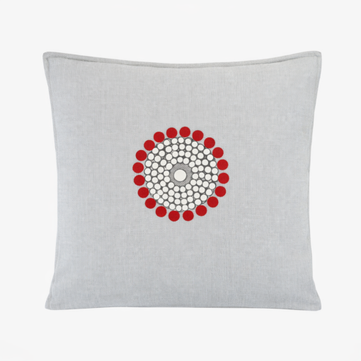 Kissenbezug mit Perlen bestickt – Beige mit rotem Ornament