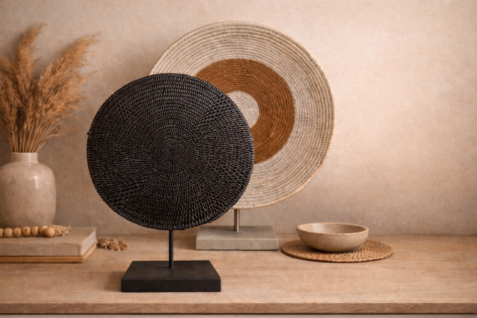 This basket has a beautiful gradient effect, transitioning from a rich, warm center to a lighter, natural-toned edge.