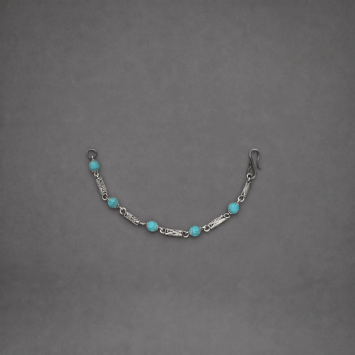 Unser Damen-Armband aus türkisfarbenen Schlingendrahtgliedern verkörpert subtile Schönheit und Raffinesse. Das gehämmerte Design bietet eine einzigartige Textur und handwerkliche Kunstfertigkeit. Ein handgefertigter Metallverschluss sorgt für Sicherheit und Langlebigkeit. Die lebendige Farbe der türkisfarbenen Glieder verleiht eine erfrischende Ästhetik. Mit einer Länge von 20 cm bietet es eine bequeme Passform. Leicht und angenehm zu tragen, ist es ein Ausdruck Ihrer Persönlichkeit und Ihres Geschmacks.