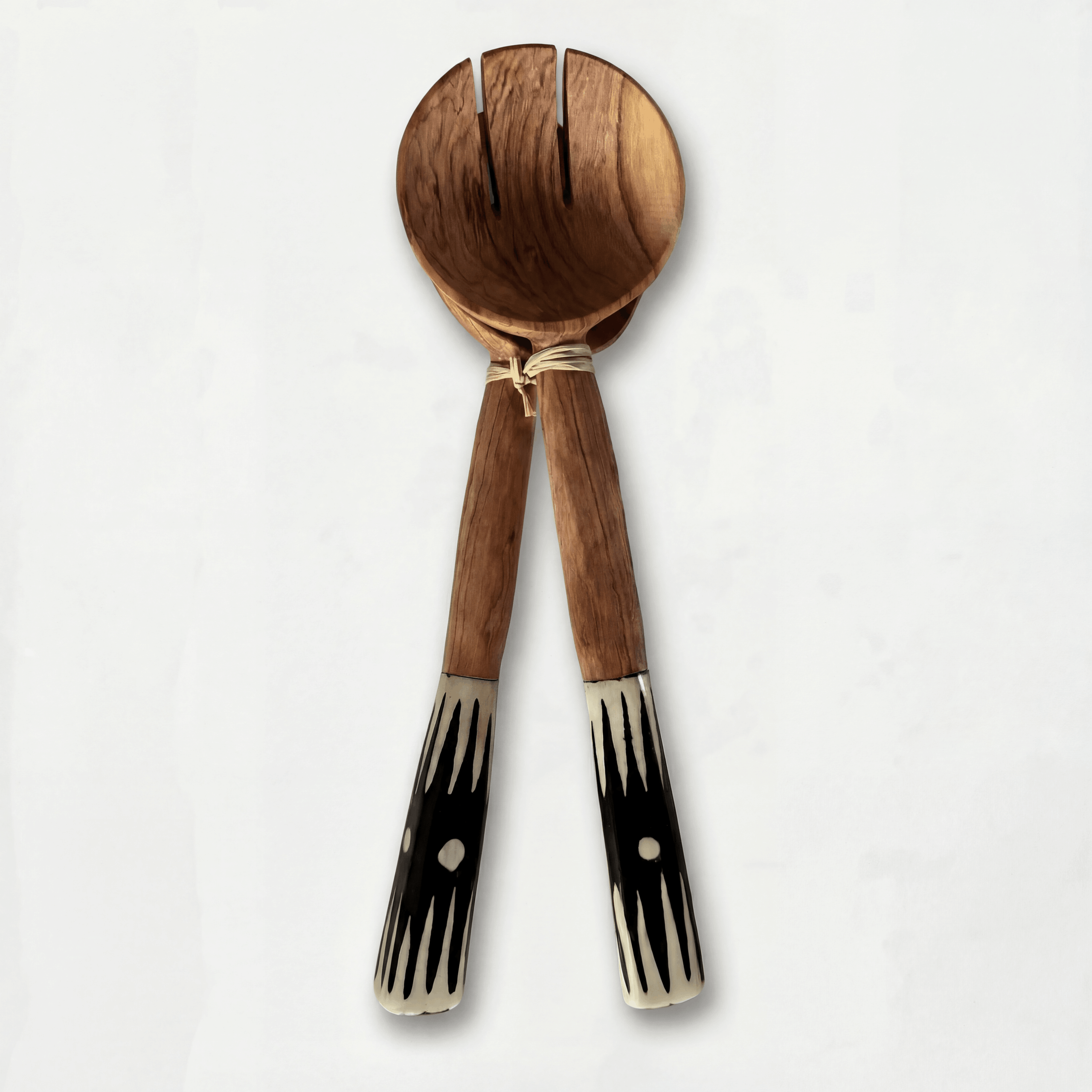 Olivenholz-Salatbesteck mit Griffen im Zickzack-Batik-Design