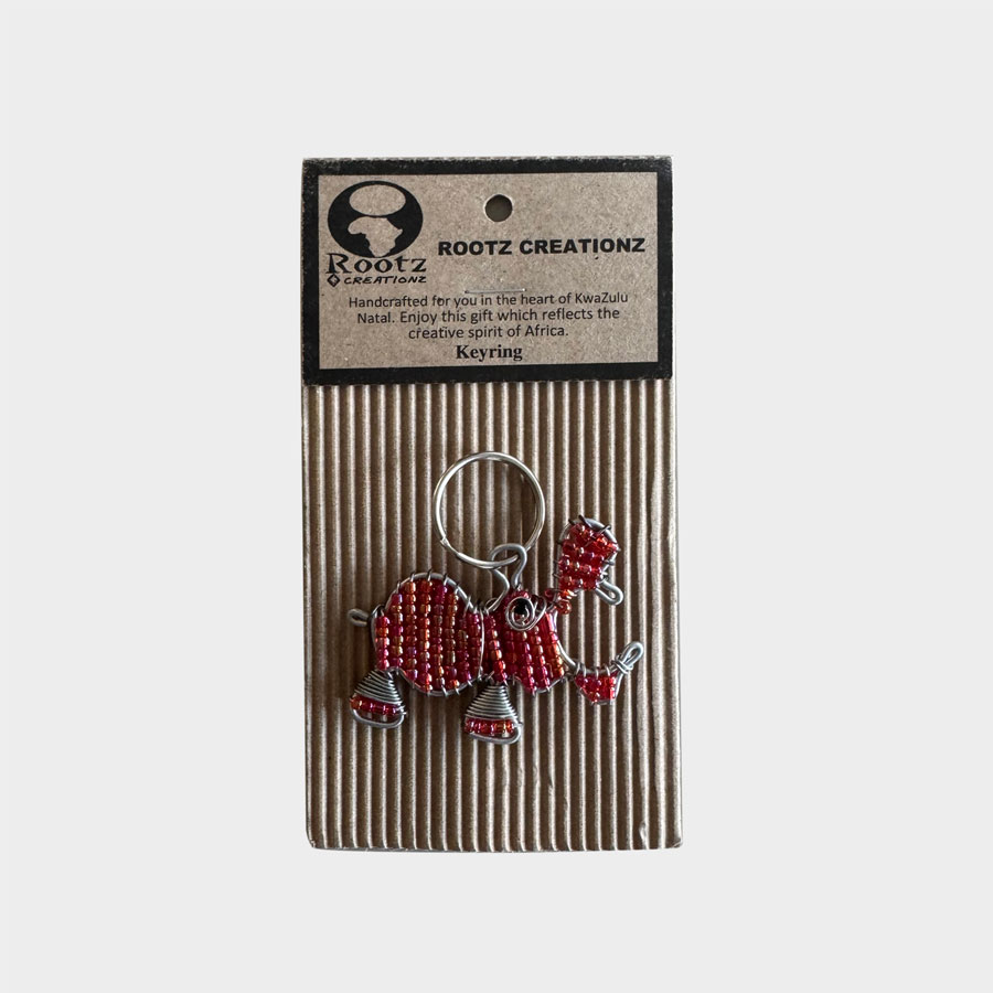 Handgefertigter Schlüsselanhänger in Form eines Nilpferds aus Draht und Glasperlen. Gefertigt von Kunsthandwerkern in KwaZulu-Natal, Südafrika – jedes Stück ist ein kleines Unikat.