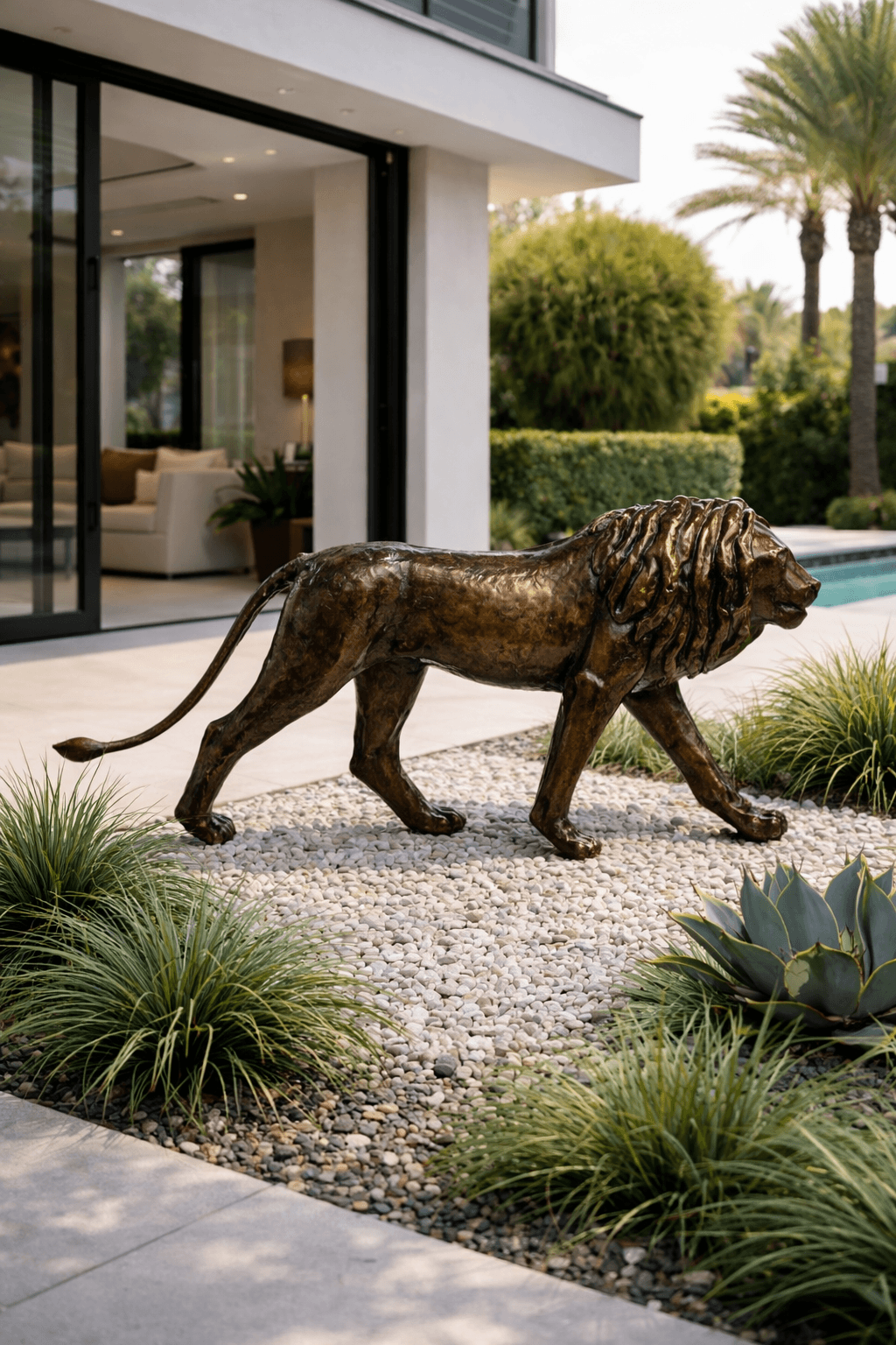 Diese Skulptur verkörpert die künstlerische Brillanz Afrikas und wird sicherlich zum Mittelpunkt Ihres Wohnraums. Ob im Wohnzimmer, im Eingangsbereich oder im Garten, dieser laufende Löwe wird Bewunderung hervorrufen und Ihre Räume mit einem Hauch von Wildnis und Eleganz erfüllen.