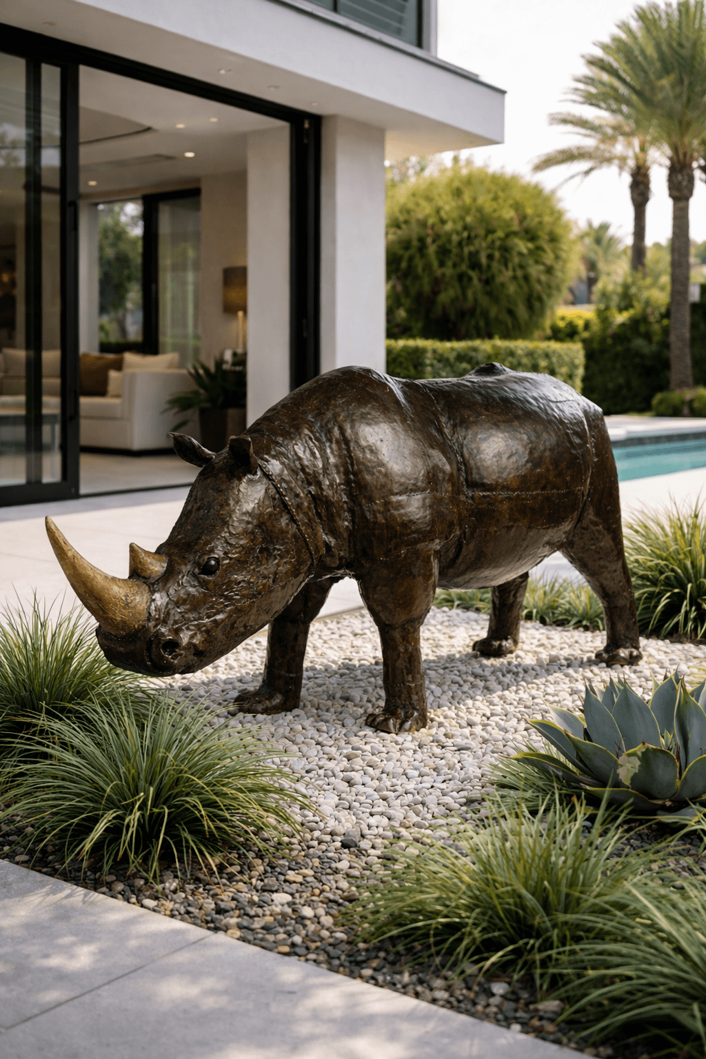 Skulptur Nashorn mit weißem Horn aus verzinktem Stahl – Sehr Groß (XL)
