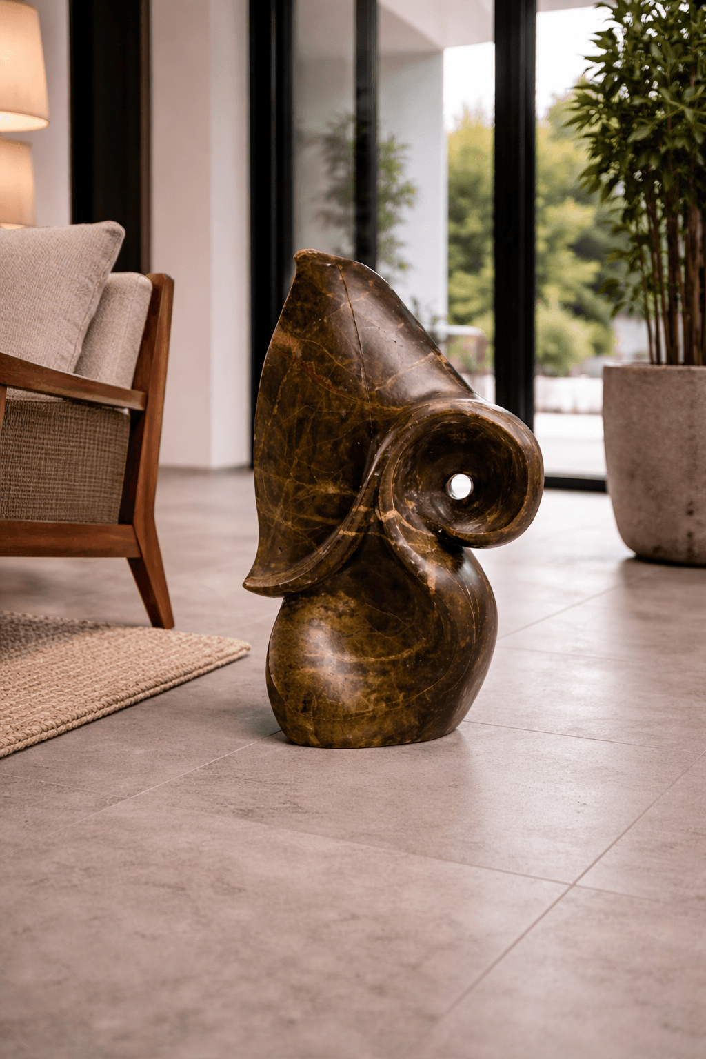 Steinskulptur „Successful Life Flower – Brauner Sandstein