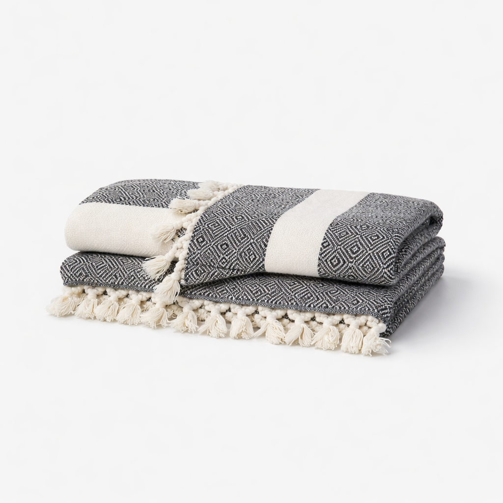 berwurf aus 100 % Organischer Baumwolle – (Grau/Wei)